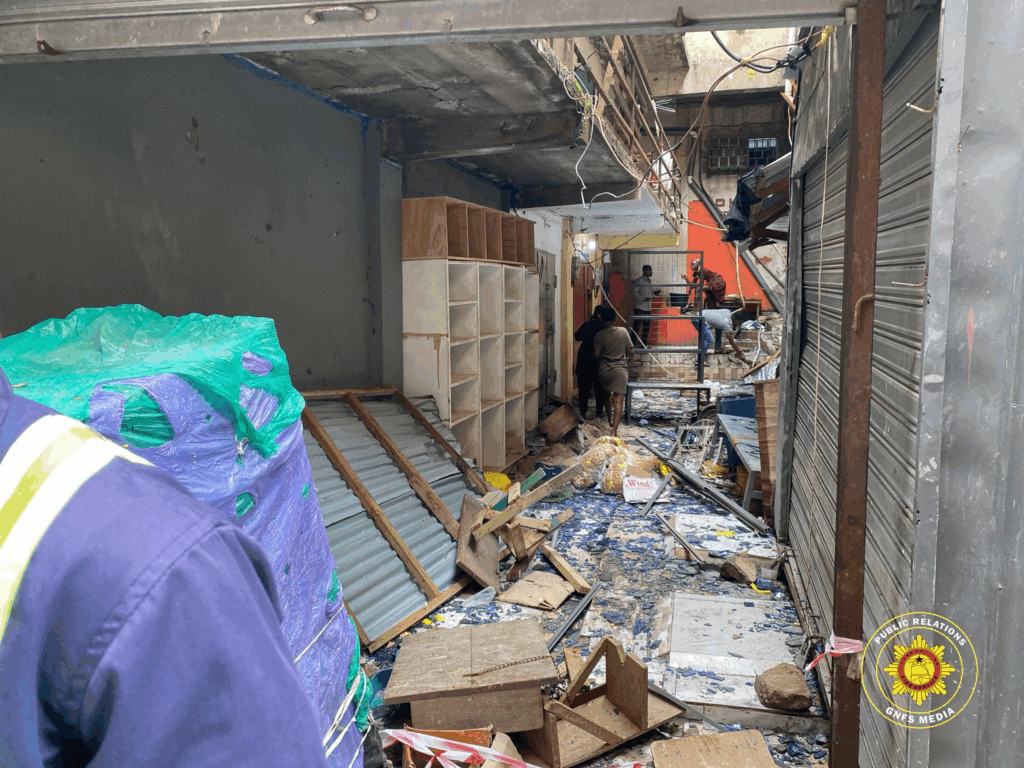 According to the Ghana National Fire Service (GNFS), Led by Assistant Divisional Officer II (ADO II) Asamoah, a six-member team arrived within minutes to find one of seven shops ablaze.